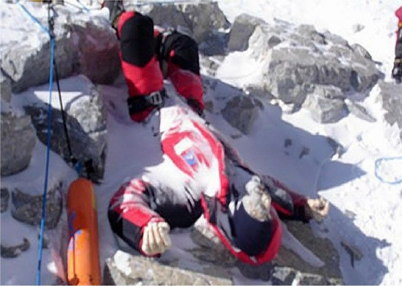 Ветер и снег делают свое дело. Места на теле, которые не прикрыты одеждой, обглоданы снежным ветром до костей, и чем старше труп, тем меньше на нем остается плоти. Эвакуировать мертвых альпинистов никто не собирается, вертолет не может подняться на такую высоту, а тащить на себе тушку весом от 50 до 100 килограммов альтруистов не находится. Так и лежат непогребенные альпинисты на склонах.
